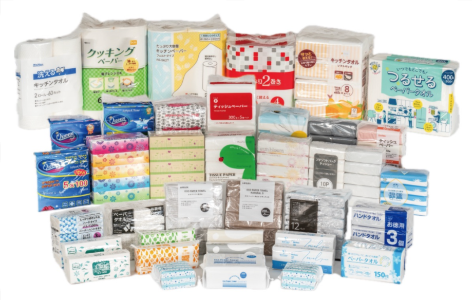 为客户提供专业化的生活用纸OEM、ODM解决方案。99%以上的产品出口至日本,年销售额约4500万美金,客户遍布日本大型商超、各大批发商、百元店、药妆店、以及医疗机构。
